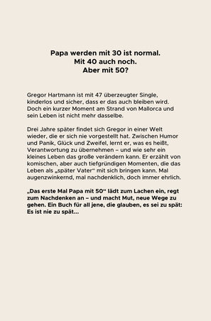 Mit 50 noch einmal Vater werden? Für Gregor bedeutet das die größte Entscheidung seines Lebens. Zwischen Milchfläschchen, Windeln und Rückenschmerzen erlebt er eine Achterbahnfahrt voller Chaos und Humor, aber auch sehr nachdenklicher Momente. Eine Geschichte über späte Vaterschaft, Familie im Wandel und den Mut, das Leben noch einmal ganz neu zu beginnen.